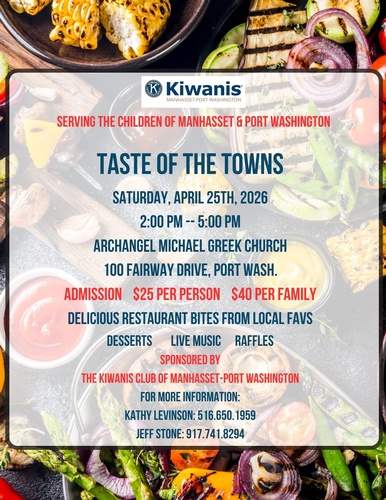 Event Description:The Kiwanis Club of Manhasset-Port Washington sponsors this event featuring delicious restaurant samplings, desserts, raffles and live music.